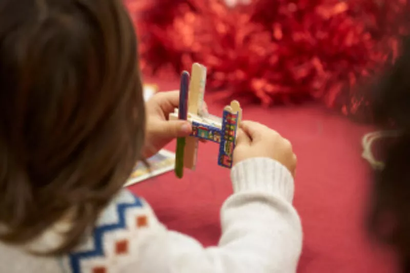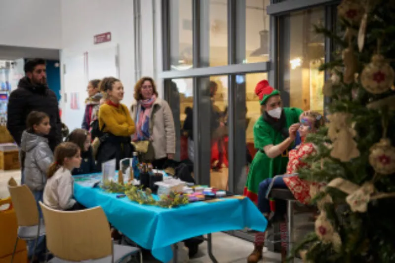 - Espace ludique pour les enfants : coloriages, puzzles, tangram, casse-têtes, avion en origami avec sa piste de lancement et maquillage de Noël