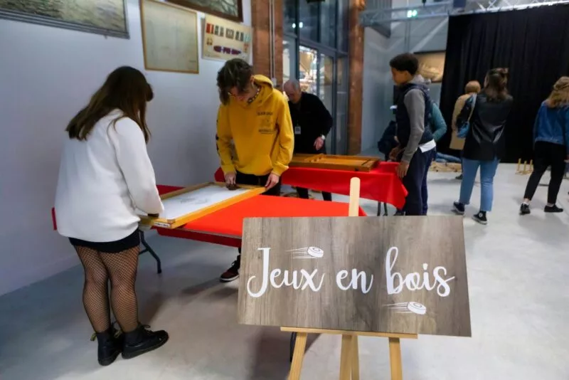 Juste à côté, dans la salle des Pionniers, deux atmosphères se rencontrent et se complètent. D’un côté, des jeux en bois invitent petits et grands à partager un moment convivial, dans l’esprit simple et chaleureux des divertissements d’autrefois. De l’autre, l’ambiance se fait plus feutrée autour des tables de roulette et de blackjack, réservées aux adultes, où le hasard et l’élégance des années folles prennent toute leur place.